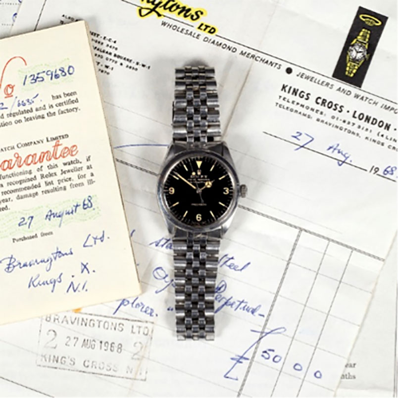 The receipt and guarantee that survived with the watch show that it was purchased from the jewellers Bravingtons Ltd of King’s Cross, London, on 27th August 1968. This kind of documentation is always valuable when selling at auction; it provides buyers with proofs of authenticity and of the direct provenance from the original owner.